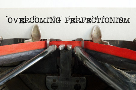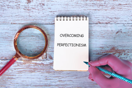 Business Overcoming perfectionism concept. Copy space. Concept words Overcoming perfectionism in a notebook made by hand