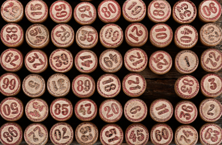 The wooden kegs of a vintage lotto board game