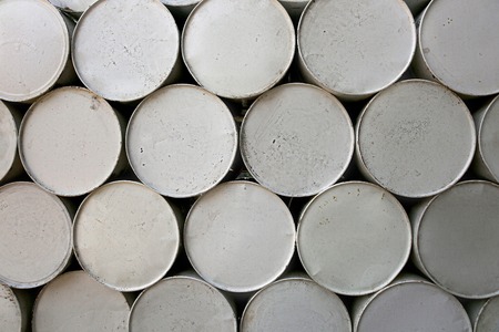 Oil barrels green or chemical drums horizontal stacked up
