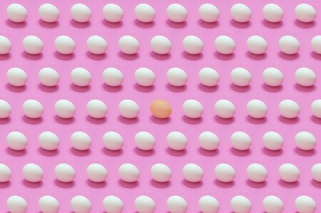 Brown egg surrounded by white eggs. Individuality and difference concept.