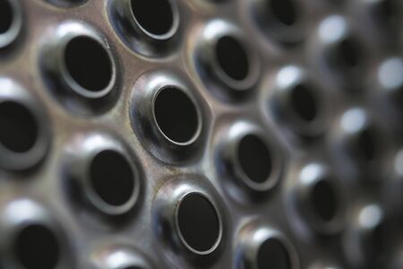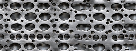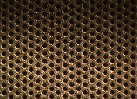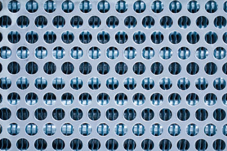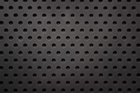Background or texture from a gray and monophonic metal surface with symmetric and round openings.