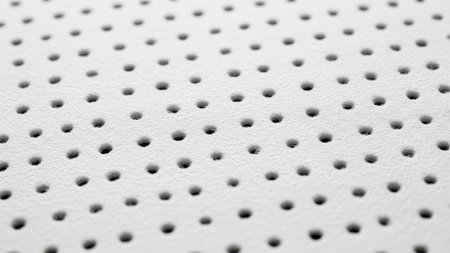 This detailed abstract background showcases a uniform pattern of small, evenly spaced circular holes on a clean white surface, creating a sense of order and simplicity