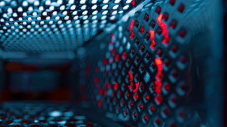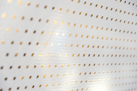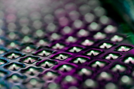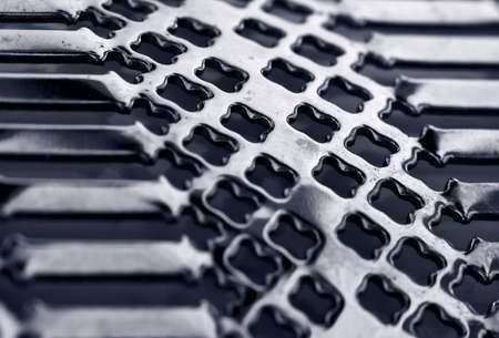 Closeup of technological plastic texture with repeating patterns and selective focus