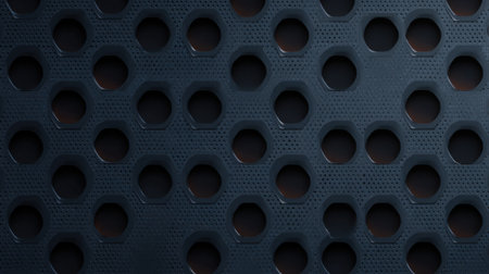 This image features a dark textured surface adorned with hexagonal patterns, ideal for modern designs, industrial themes, or innovative projects that require a unique background.