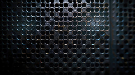 Dark brown Metal Background with Holes. Metal Grid for industrial. Close-up