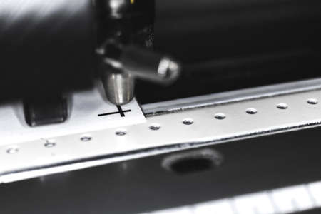 Modern plotter laser cutter machine in print house industry, close-up view photo