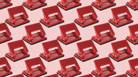 A pattern of red hole punches on a light pink background. Minimal stationery concept.