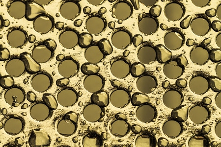 waterdrops on black steel grate in gold tone