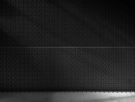 Black metal background with round holes