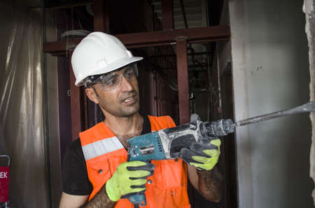 Construction worker working with hammer drill