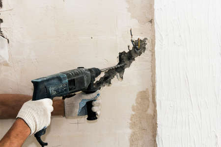 professional builder drills a hole in the wall