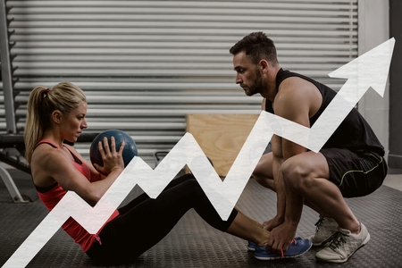 Digital composite of Arrow against people exercising photo