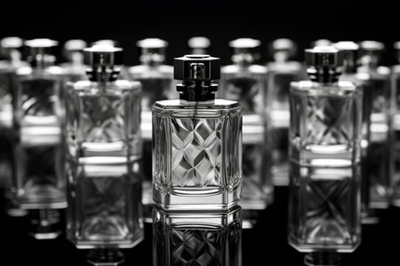 Luxury perfume bottles on display at a presentation, women fragrance scent new exclusive collection idea, post-processed, generative ai