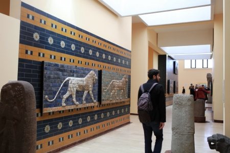 BERLIN, GERMANY - JANUARY 5 2016: Tourists admire the exhibits of the Pergamon museum