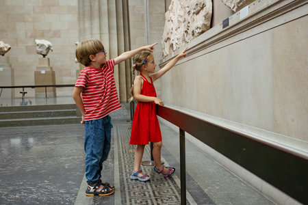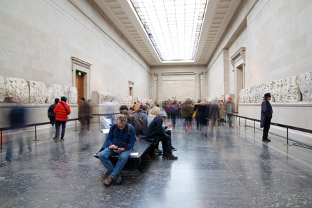 London, UK - March 4, 2019: tourists visiting Ancient Greek collection of Phaeton in British Museum.