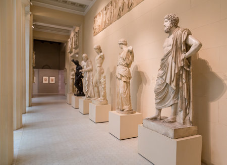 Moscow, Russia - November 9, 2017: Row of statues in Pushkin Museum of Fine Arts, largest museum of European art in Moscow, Russia