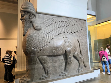 London, United Kingdom - May 13, 2019: Sumerian exhibit in British museum on May 13, 2019 in London, United Kingdom.