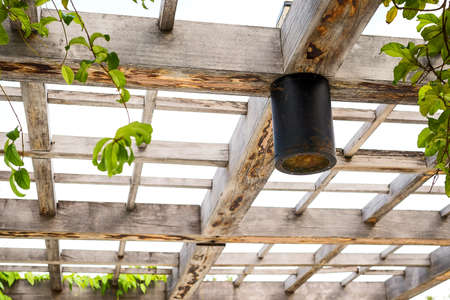 pergola wood background with string lights
