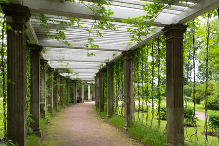 Tsarskoye Selo, Saint-Petersburg, Russia - July 7, 2020: Italian style pergola in the Private Garden of The Catherine Park. The Tsarskoye Selo is the former imperial residence and The State Museum