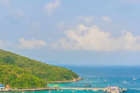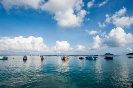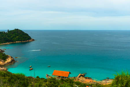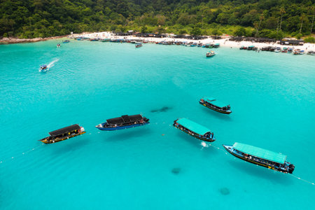 Coral island, koh He, beach and boats in Phuket province, Thailand