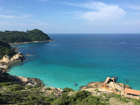 Beautiful beach scenery on a sunny day with clear water on Redang Island in Malaysia. Turtle Beach