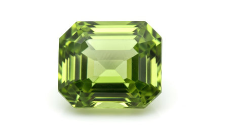 Peridot exuding vibrant green hues, like fresh spring foliage, on a pure white background.