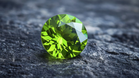 A sparkling peridot gemstone in a round cut, glowing with fresh green vibrance.