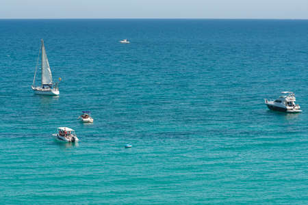 Beutiful top view on boats and yachts at Cabo Roig and coastline of Dehesa de Campoamor. Province of Alicante. Costa Blanca. Spain.