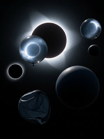 Dark gray spheres floating in the air, dark background, high resolution, cinematic style. --ar 8:5 --v 6.1 Job ID: e0a2431a-611c-43a7-a0d7-c8e6c968abe5