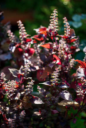 Red coleus thickets, flowers and