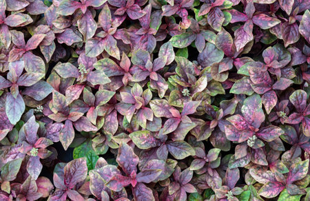 Natural background of small purple-red leaves. The ornamental plants for decorating in the garden. Pattern leaves.