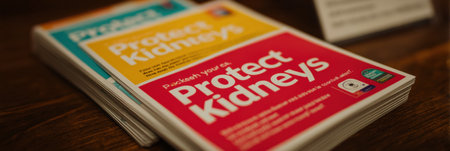 A stack of bright flyers titled Protect Your Kidneys encourages attendees at a community health event to prioritize kidney health and wellness.