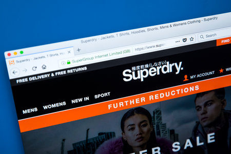 LONDON, UK - JANUARY 8TH 2018: The homepage of the official website for Superdry - owned by SuperGroup plc - the British international branded clothing company, on 8th January 2018.