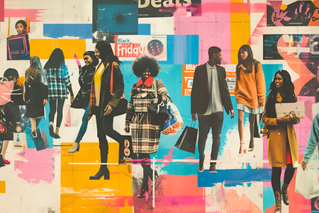 People with bags in a mall shopping for Black Friday