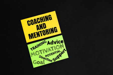 colored paper with the words coaching and mentoring. the concept of coaching and mentoring