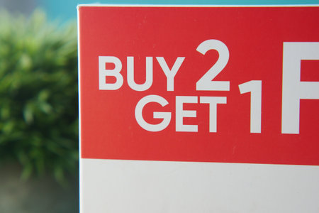 buy 1 get 1 free offer sticker and prodcuts on table