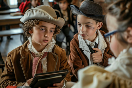 Deventer, Netherlands, December 15, 2018: Group of school children during the Dicken festival in Deventer in the Netherlands