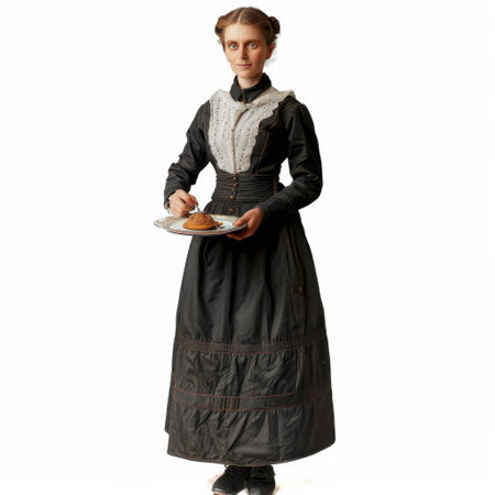 Victorian woman in elegant dress and hat, holding fan, exuding timeless beauty and sophistication. Ai generated image