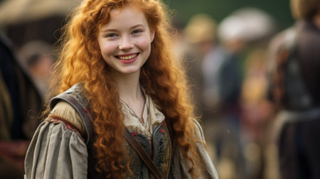 An AI-generated illustration of a girl in Renaissance gown at a historical reenactment festival