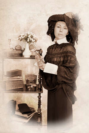 Sepia-toned vintage portrait of an elegant young woman, showcasing historical fashion and timeless beauty. Ideal for heritage, nostalgia, or documentary projects requiring an authentic antique feel.