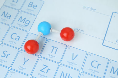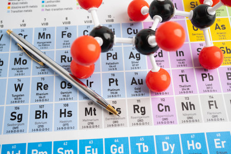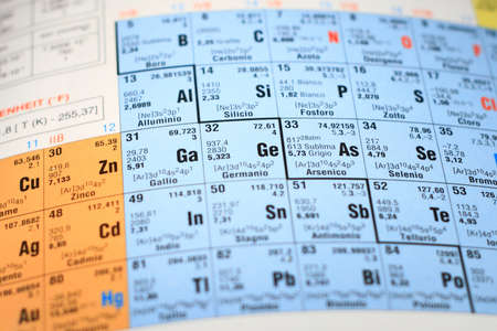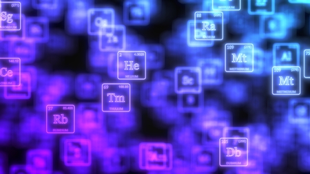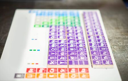 Closeup photo of a colorful periodic table on a computer screen with selective focus