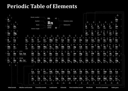 Periodic table of the chemical elements illustration. Isolated on black background.