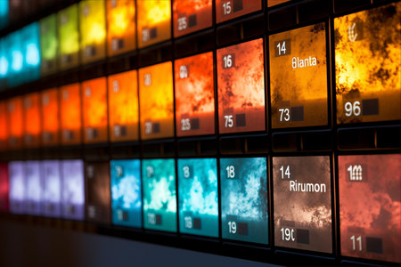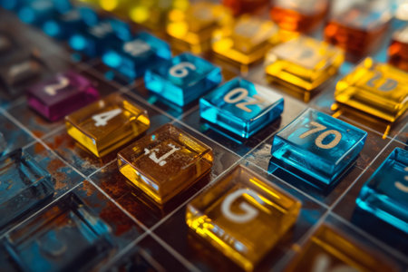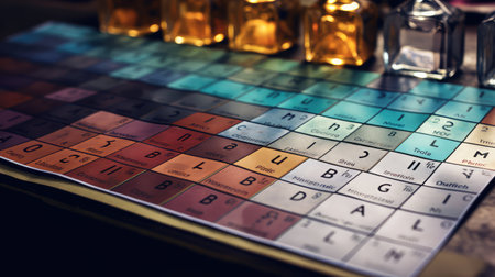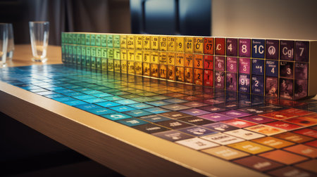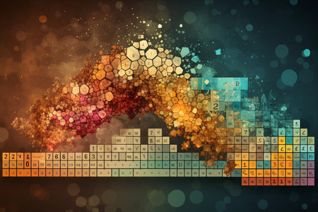 Vibrant colors brighten element symbols and atomic numbers in a surreal periodic table, highlighting chemistry beauty and fundamentals.