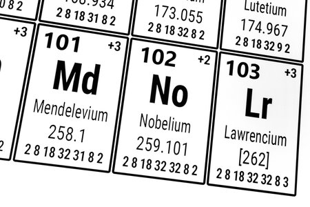 Periodic table of the elements: Mendelevium, Nobelium, Lawrencium