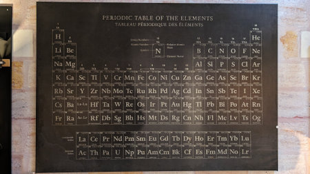 Bordeaux, France - 11 04 2023: Periodic Table Of Elements poster on wall Background