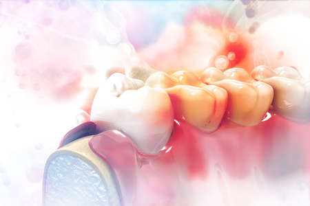 Human tooth on scientific background. 3d illustration