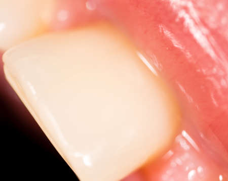 extreme closeup of white teeth of teenage boy