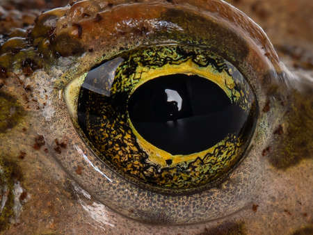 Full frame macro shot of eye form Bufo Boulengeri aka African Green Toad.
