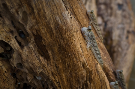 Three barred mudskippers are resting. This fish, which is mostly done in the mud, has the scientific name Periophthalmus argentilineatus.