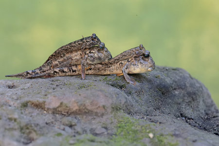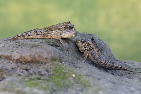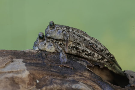 Two barred mudskippers are resting. This fish has the scientific name Periophthalmus argentilineatus.